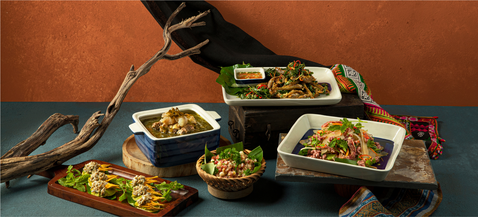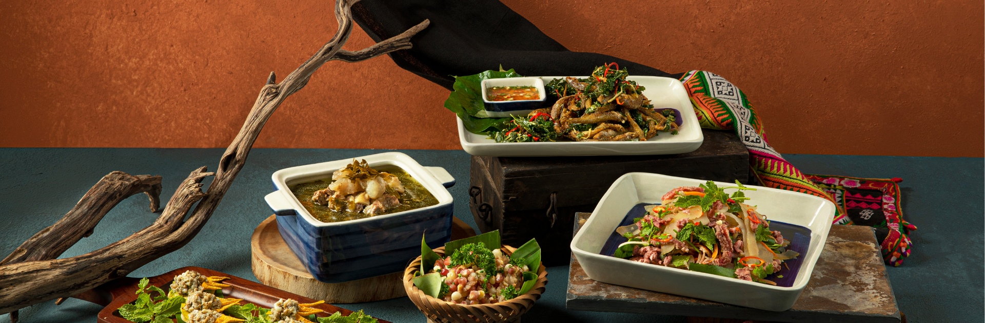 Trong trạm đầu của hành trình, A Bản Mountain Dew sẽ mang đến cho Khách quý những trải nghiệm ẩm thực ấn tượng của bốn dân tộc: Thái, Mường, Tày, Mông.