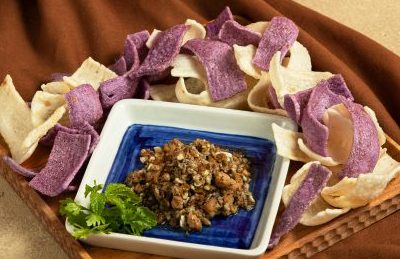 Món ăn truyền thống của dân tộc Thái. Được chế biến rất cầu kỳ từ bì trâu, nước măng chua, hoa chuối, rau thơm, …