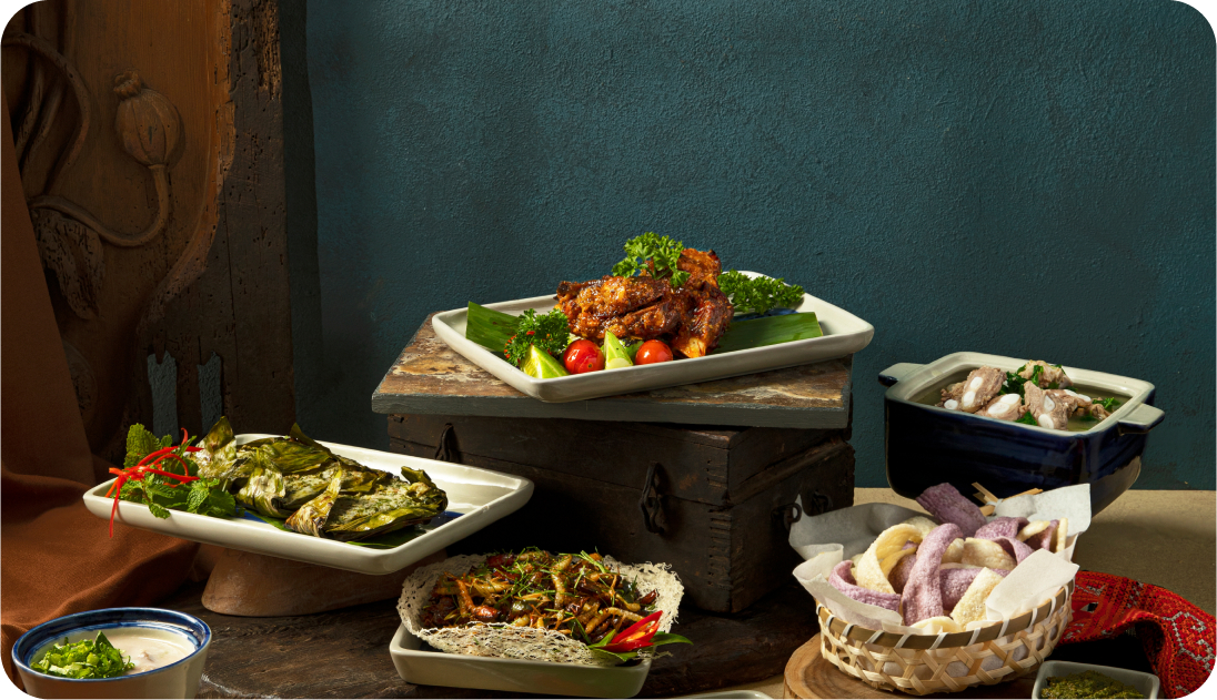 Món ăn được chế biến theo cách của đồng bào dân tộc Thái, với thịt nạc vai, rau cải, mắc khén, …